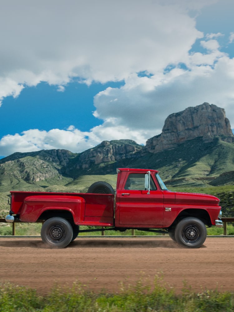 These trucks were somewhat short on creature comforts but long on ground clearance. New for 1963 were "high torque" 6-cyl. engines, in 230 and 292 cid versions, a new-design coil-spring front suspension, and a new front end look featuring a wider grill and headlight treatment. The pickup line included ½ and ¾ ton versions in 115" and 127" wheelbases. 1-ton models rode on a 133" WB. Chevrolet offered the trucks with two different boxes, Fleetside or Stepside. Long gone was the 3100, 3200, and 3600 designations for short 1/2, long 1/2 and 3/4-ton models. It was replaced by 10, 20, or 30 for 1/2, 3/4, and 1-ton models. Since 1957, trucks were factory available as 4-wheel drive, and the new class scheme would make this known. A "C" in front of the series number meant 2-wheel rear drive, and a K would denote 4-wheel drive.